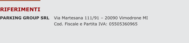 Riferimenti Parking group Srl	Via Martesana 111/91 – 20090 Vimo